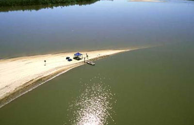 Itapura, em sua foz no rio Paraná, na