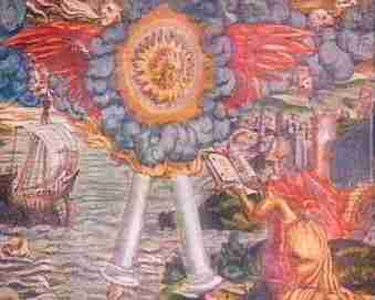 por cima do firmamento, que estava por cima das